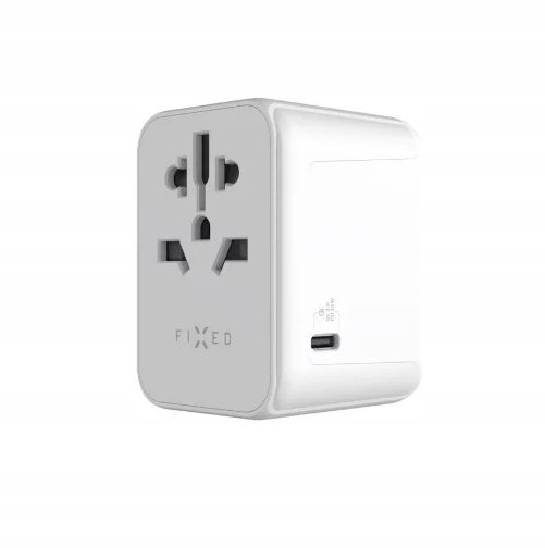 - Uniwersalny adapter podróżny FIXED Voyager z ładowarką USB-C i 2xUSB-A.