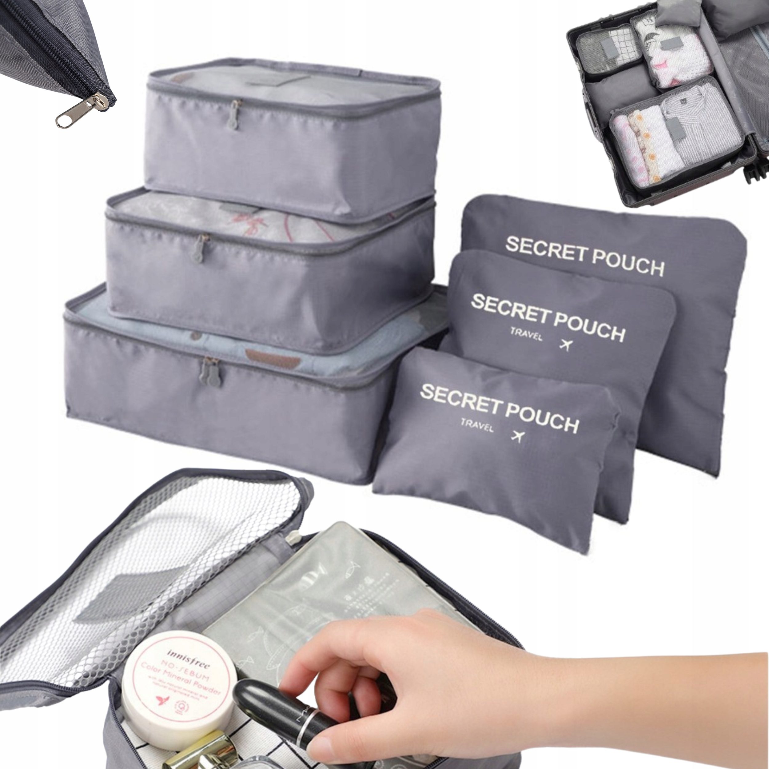- Zestaw 6 organizerów do walizki dla lepszego pakowania.